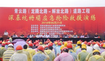 “指揮長,青云路K1+260基坑坍塌,一名工人受傷,一名工人被困,現(xiàn)場情況緊急……”21日上午,在我市青云路項目工地,現(xiàn)場正如火如荼開展深坑基坍塌應(yīng)急搶險救援演練。本次演練由市國資委主辦,市住建局指導(dǎo),龍巖城發(fā)集團承辦、市城投公司、安居公司、國城置地公司、城發(fā)…