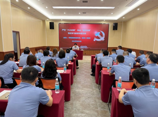 參觀結束后,市政集團黨支部書記、董事長張鏡龍在土樓會議室內與全體干部職工共同觀看了廉政警示教育紀錄片,并上了一堂題為“嚴守‘六大紀律’爭當‘廉潔先鋒’”的黨紀學習教育專題黨課。他強調,要深刻領悟中國共產黨紀律處分條例修訂的內涵要義,在個人工作和生活上,切實維護紀律的剛性嚴肅性,進一步提升自身敢作善為、清正廉潔的個人素質,切實維護好企業和個人的良好形象。
