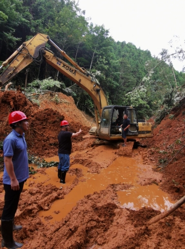 對(duì)搶險(xiǎn)人員來說,最困難的不是清淤,而是5臺(tái)挖掘機(jī)、4臺(tái)拖車的加油問題,由于道路還未暢通,機(jī)械無法到達(dá)指定場所加油,當(dāng)?shù)赜譄o加油車,如果無法加油,機(jī)械很快就將停工,救援人員已經(jīng)做好一桶一桶“手動(dòng)”拎汽油的準(zhǔn)備。為解決加油問題,市政集團(tuán)黨員代表與巖前鎮(zhèn)政府多次溝通,共同協(xié)調(diào)從廣東廣福鎮(zhèn)安排加油車到達(dá)受災(zāi)點(diǎn)為機(jī)械進(jìn)行加油,解決了現(xiàn)場機(jī)械供能問題。