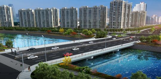 犀牛路二期為龍巖火車站北站房片區基礎設施配套項目,項目起始于犀牛路與羅龍路交叉口,終止于犀牛路與雙洋路交叉口,包括道路工程、一座中橋及一座人行天橋,全長約460米,寬43米,道路等級為城市主干道,設計速度40千米/小時,采用瀝青路面,總投資約9100萬元。