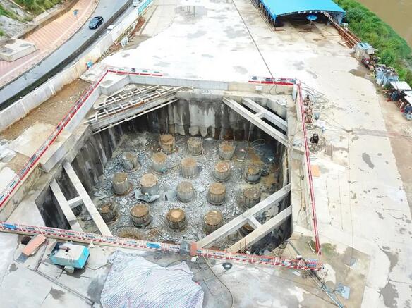 8月24日,繼龍巖大道高架橋主橋主塔樁基、承臺基坑開挖完成后項目已進入主塔承臺施工階段主橋封底混凝土澆筑完成0.75米(共1.5米)主橋轉體關鍵設備鑄鋼球鉸已生產完成現場正進行樁頭破除作業。由于連續橫跨贛龍鐵路、龍廈鐵路、羅龍東路、龍津河、雙洋路,主橋采用不對稱跨塔梁同時轉體施工,其轉體總重達2.366萬噸,轉體懸臂173.75m,施工難度巨大。為避免對城市道路及鐵路運行的影響,主橋將采用不對稱跨塔梁施工并分二次轉體,下一步進行控制性工程為兩次主塔轉體施工。