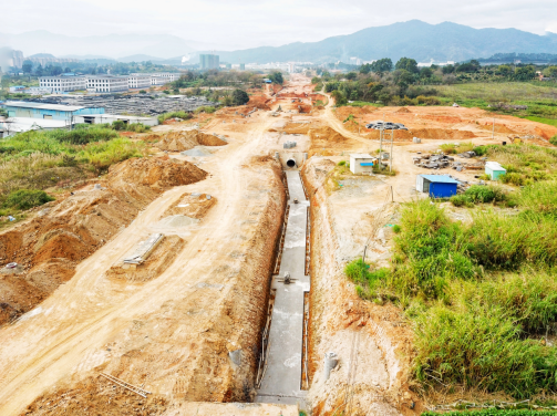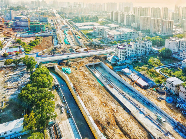 2017年9月開工。目前,下穿車型通道U型槽、箱型通道、排洪溝主體已完成管廊主體結(jié)構(gòu)已完成45米